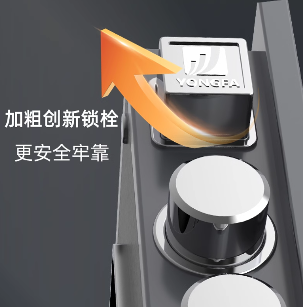 其一,專利鎖具與三面鍍鉻鋼栓形成“防鉆、防撬、防撥”三位一體防護;