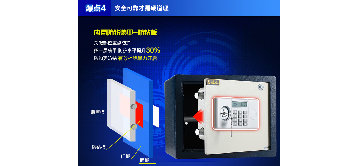 永發經典電子系列3C認證保險箱D-30BL3C尺寸說明:300高*380寬*310深mm 重量:30kg