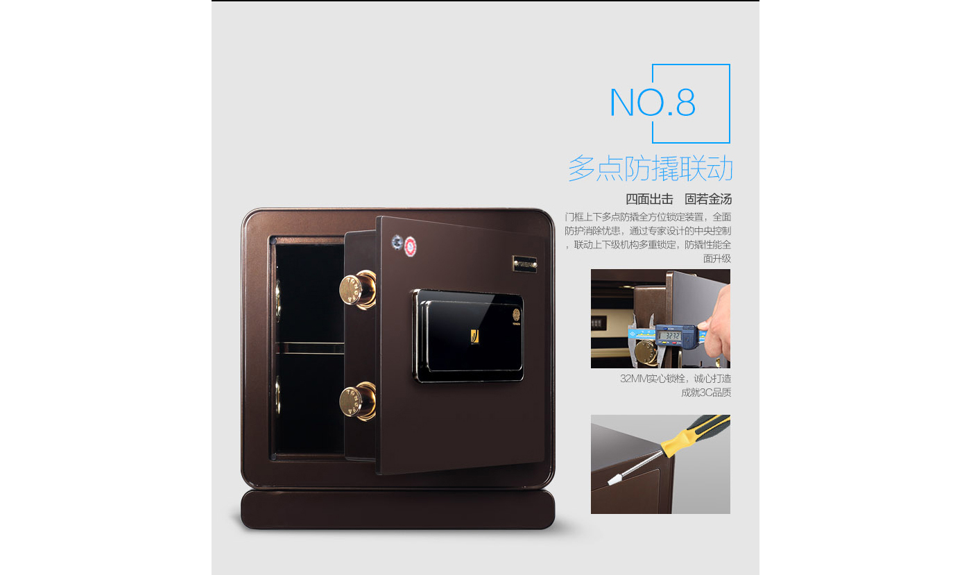 永發尚瑞系列指紋式3C保險柜35BPM3C-13尺寸說明:410高*390寬*330深mm(含底座) 重量:35kg
