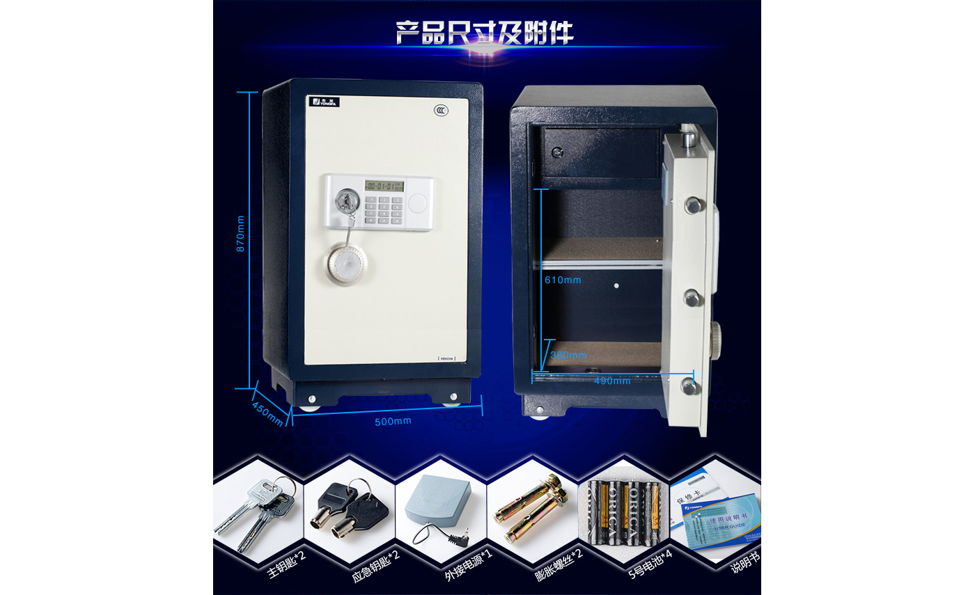 永發經典電子系列3C認證保險箱D-80BL3C尺寸說明:870高*500寬*450深mm(含底座) 重量:120kg