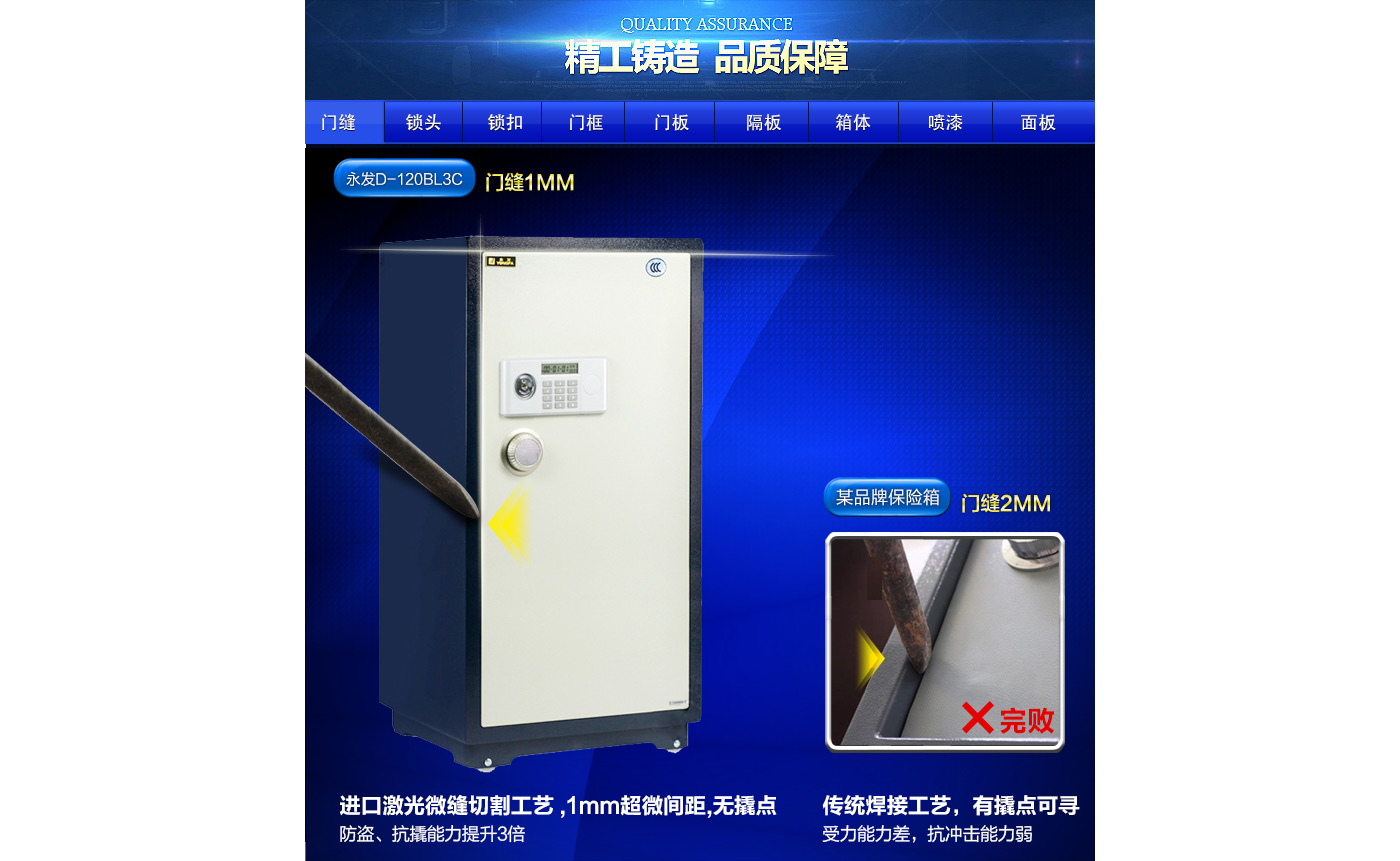 永發經典電子系列3C認證保險箱D-120BL3C尺寸說明:1270高*600寬*565深mm(含底座) 重量:215kg