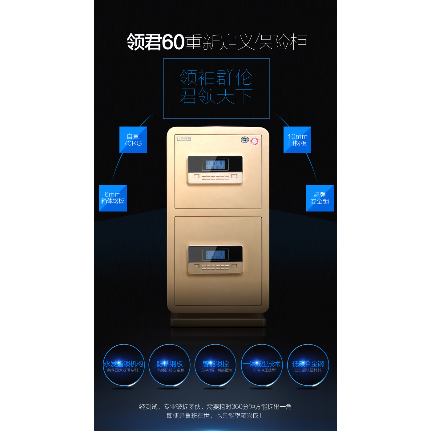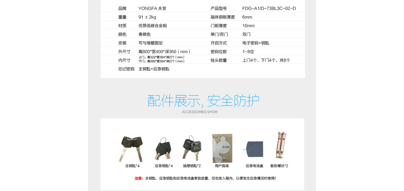 永發領君電子式保險箱D-73BL3C-02/d尺寸說明:800高*400寬*360深mm(含底座) 重量:91kg