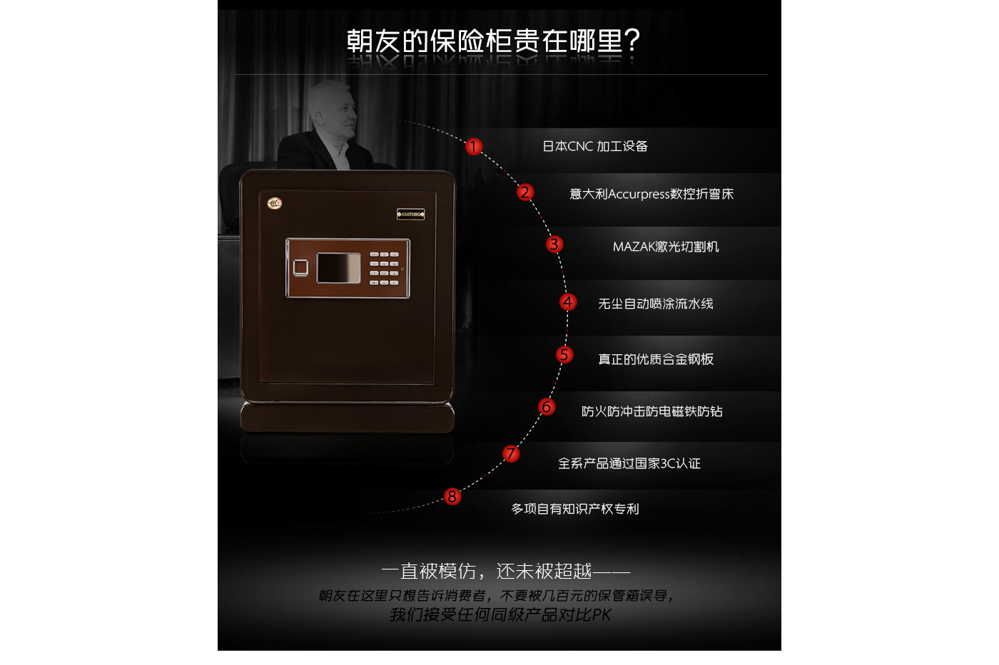 永發旗下朝友CC45金慧電子式3C保險柜尺寸說明:500高*390寬*330深mm(含底座) 重量:43kg