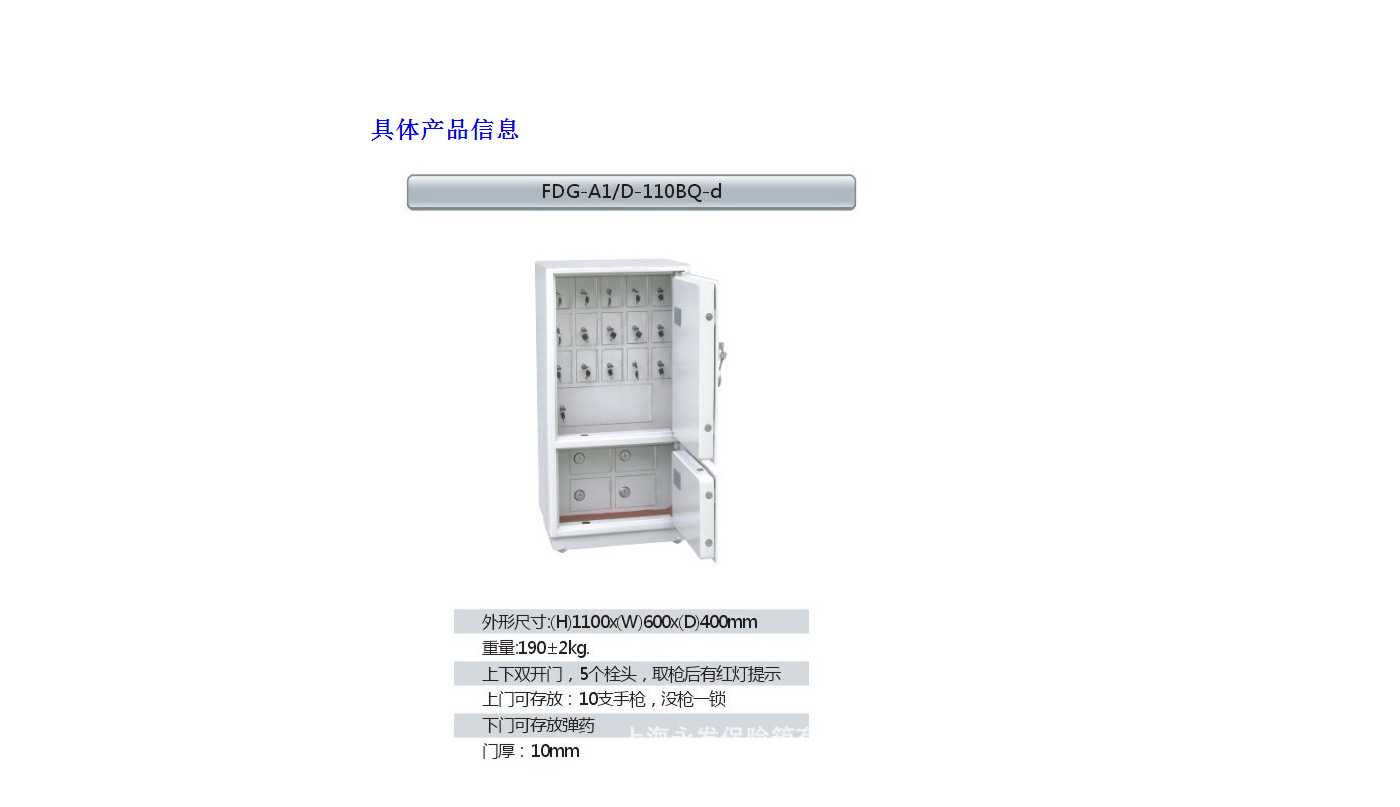永發定制手槍柜尺寸說明:1100高*600寬*400深mm(含底座) 重量:190kg