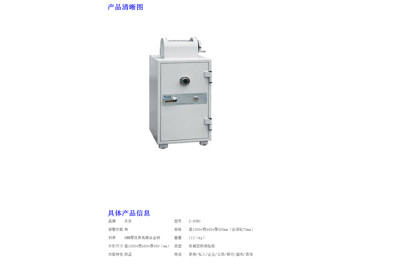永發(fā)機(jī)械式投幣柜J-90BG尺寸說(shuō)明:1000高*480寬*450深mm(含底座) 重量:112kg