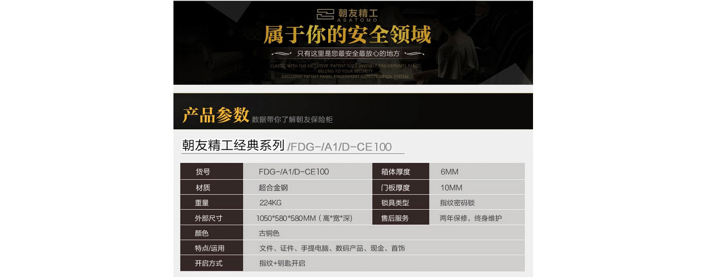 永發旗下朝友CE100經典指紋3C保險柜尺寸說明:1050高*580寬*580深mm(含底座) 重量:224kg